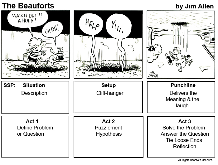 Situation, Setup, and Punchline. A Situation is introduced in the